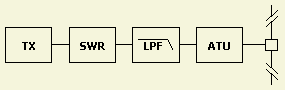 A low-pass filter (LPF fig») is always in use and the ATU ensures that the filter is correctly terminated with 50 Ohms, which is required for the correct functioning of the filter. The filter causes the tuning of the ATU to be sharper and aids in tuning the ATU to a 1 ÷ 1 SWR.