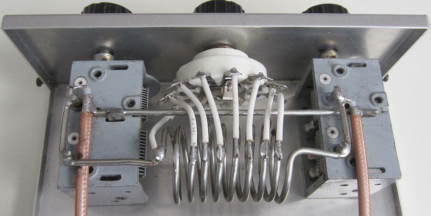 Connect the parts with the same #10 wire and do not use the chassis for the return path. Use the soldering lugs that are normally used for earth and keep the connections short. Take note how the Teflon coax (fig» RG-142 or similar) is connected to the capacitors. This helps to minimise stray inductance of the wiring, which starts to have an impact when using the ATU on 10 meters.