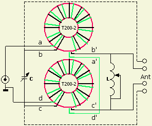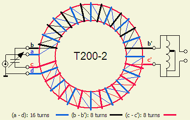 The rule-of-thumb for the windings is: ATU for 10 – 160 m: (a-b) = (c-e) in series with (f-d) ≈ 3 µH ATU for 10 – 30 m: (a-b) = (c-e) in series with (f-d) ≤ 3 µH ATU for 30 – 160 m: (a-b) = (c-e) in series with (f-d) ≥ 3 µH |