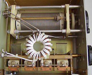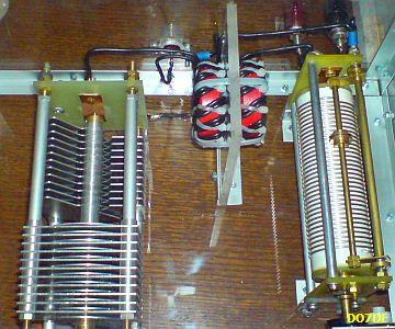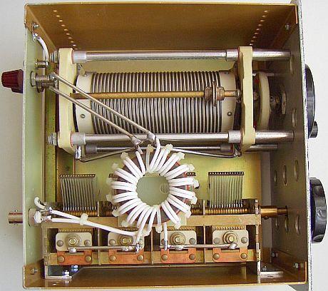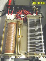 Abgesehen von der Wirkung an meiner Antenne, zeichnet sich der Koppler durch seine absolute Einfachheit aus. Der jetzt von mir aufgebaute kleine Koppler (fig») beinhaltet neben dem Ringkern einen Drehko (439 pF) von lediglich 1.5 mm Plattenabstand und eine relativ kleine Rollspule (28 µH) a la Annecke. Im abgestimmten Zustand sind 100 W HF absolut kein Problem. Die zusätzlich schaltbaren Kondensatoren werden an einer 2 × 20 m langen Antenne nicht benötigt, bei mir zuhause allerdings doch. Im 80 m Band brauche ich 1100 pF, wenig L und auf 160 m reicht der Drehko neben 21 µH der Rollspule. Es funktionieren übrigens alle Bänder von 160 bis 10 m einwandfrei.
