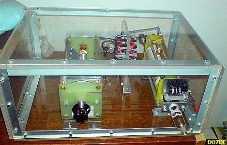 Wie o. g. reicht ein einfacher Doppeldrehko mit 2 × 500 pF. Für 160 m sollten dem Drehko min. 100-330 pF paralell hinzugeschaltet werden. Ein Aufbau mit zwei T200 Kerne («fig) ist auch nicht erforderlich, ich konnte keinen Unterschied messen bei der Variante mit einem Kern, wiederum ein Bauteil weniger.