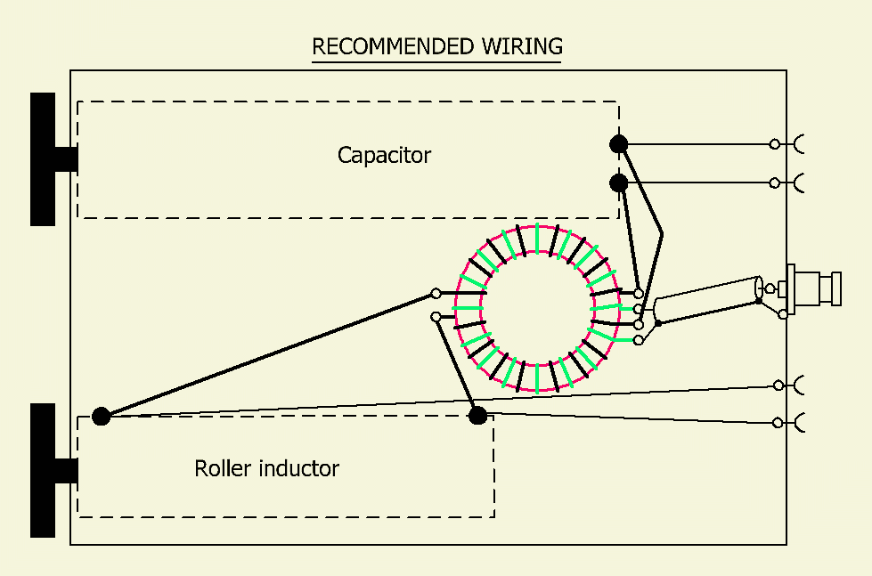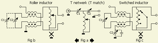 This simple ATU with variable capacitors (from a vintage AM receiver) and a T200-2 toroid is suitable for 400 Watts (fig»). The matching range can be increased with an extra-switched 100–220 pF/5 kV fixed capacitor and used when the antenna impedance is below 50 Ω. With my inverted dipole it was necessary to switch-in the fixed capacitor in parallel with the roller inductor only on the 80 m band.