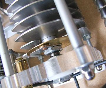 Zo is het ook met het tellersysteem («fig) van de rolspoel gegaan. In de vorige eeuw bood Kent Electronics eens voor een gering bedrag een doos vol met tandwielen uit oude militair apparatuur aan. Dat werd meteen gekocht want je weet maar nooit wanneer dat van pas komt. Door het gewicht waren de verzendkosten hoger dan de aankoopprijs. Jarenlang bleven de tandwielen in de doos omdat er geen emplooi voor was. Ten slotte bleek het met enige aanpassingen mogelijk om een redelijk uitziend tellersysteem samen te stellen met een paar ijzerwaren uit de doos van Pandorra.