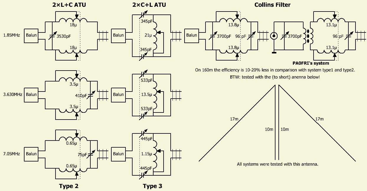 Er is mij meermaals gevraagd wat ik van PAØLL's antenne tuners vind. Uit mijn testen Klasse indeling sym ATU's is gebleken dat het rendement van beide systemen 2C+L en 2L+C evengoed zijn en zij worden bij mij ook door elkaar heen gebruikt. Het maakt dus niets uit welke van de twee u in elkaar zet, want dat hangt grotendeels af wat u wenst, de componenten die u vergaren kunt en uw handigheid om twee rolspoelen of twee condensatoren te koppelen.