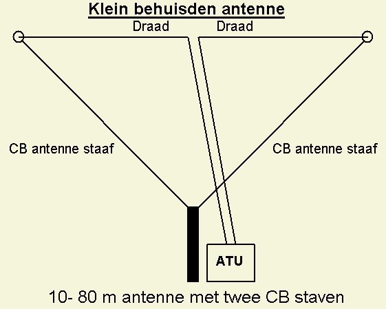 U kunt geld en een moeilijke constructie besparen door een (eventueel langere) antenne volgens bovenstaande tekening te maken. Het is een effectief systeem voor 10 tot en met