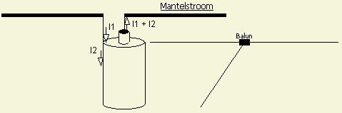 Een resonante halve golf dipool kan in principe met coax gevoed worden. Nadeel daarvan kan zijn dat mantelstromen over de buitenkant van de kabel lopen waardoor het stralingspatroon verstoord en het gevaar van inpraten vergroot wordt. De antennestroom zoekt de weg van de minste weerstand (een kortere weg) en dat kan gaan via de buitenkant (I2») van de afscherming in plaats van binnendoor (I1»). Het een en ander hangt af van hoe het systeem afgewerkt wordt. Maar ook met een balun en een coaxkabel die niet over een behoorlijke lengte loodrecht op de antenne afgevoerd wordt, heeft men kans op mantelstroom. De remedie daartegen is een kunstmatige verhoging van de impedantie van de afscherming met behulp van een smoorspoel. Deze brengt men aan zo dicht mogelijk bij het voedingspunt. Zo'n mantelsmoorspoel bestaat in zijn eenvoudigste vorm uit een deel van de coaxkabel dat gemaakt is met 6 à 8 windingen met een diameter van ongeveer 15 cm. Het samenstel wordt bijeen gehouden door een paar bindbandjes.