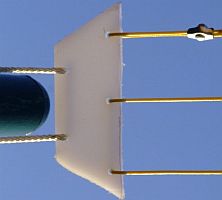 De draad van de antenne door de lintlijn rijgen om de "linear loading" stub op te hangen, zodat geen kabelbinders nodig zijn.