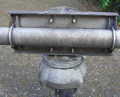 Een stevige vrijstaande mast kan toch door windstoten knikken of afbreken. Bij een gelijkmatige sterke wind is er over het algemeen niets aan de hand. Omstreeks 1982 keek ik midden in de nacht tijdens een storm uit het dakraam en zag mijn 2elements Yagi met home made 2 m antenne niet meer tegen de grauwe lucht. Het waarom ziet u op de foto. Een stalen verlengbuis met een wanddikte van