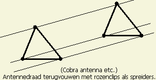 De hoek is te klein om als dipool effectief te zijn. Deze antenne («fig) werd "verlengd" door de uiteinden terug te vouwen, maar ook hier is de hoek tussen beide draden te klein. |