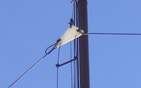 Jaren later scheurde («fig) door verwering het bovenste ophangoog en lag de inverted dipool over de beplanting in de tuin. De middenisolator werd vervangen door een driehoek gezaagd uit een polypropyleen kaasplankje.