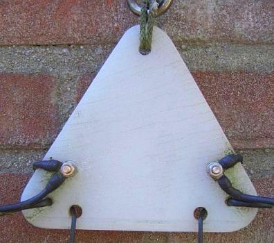 Als isolator voor antennes en het monteren van onderdelen bij bouwprojecten zijn goedkope kaas of snijplankjes zeer geschikt. Het materiaal is meestal 8 mm dik en stevig genoeg voor onze doeleinden. Een driehoekige isolator om antenne en voedingslijn te koppelen is van zo'n snijplank gemaakt.