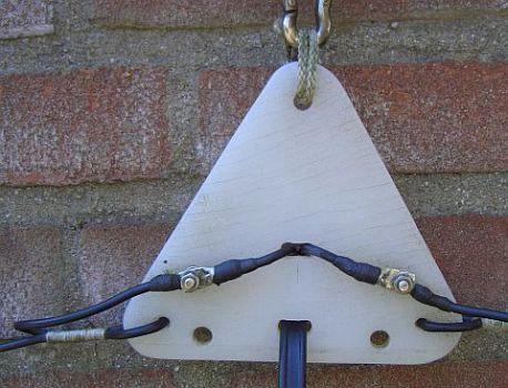 Wireman verkoopt steunen (fig») om open lijnen van de antennemast vrij te houden. De afbeeldingen brachten PAØEA op het idee zelf zoiets te maken. De constructie volgens de tekst en foto's zal wel duidelijk zijn.
