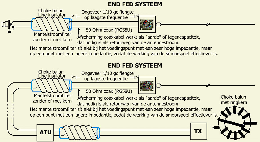 Aanbevolen maatregelen bij een end fed systeem.