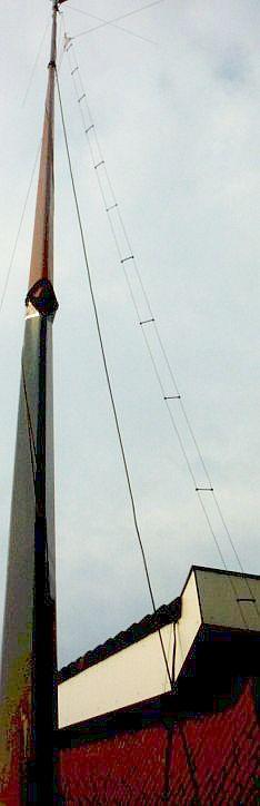 Deze antennes werden als inverted V aan een 12 m hoge metalen mast bevestigd. |