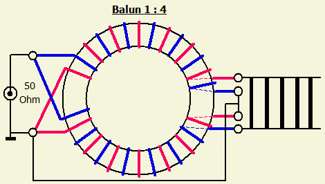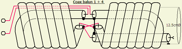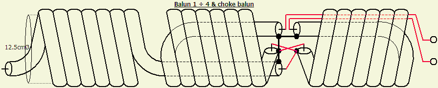 Choke balun en 1 ÷ 4 balun samengevoegd. |
