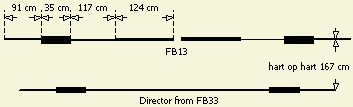 Om ook op 160 m met zo min mogelijk verliezen te kunnen werken, moet de voorgestelde afmeting van 27 m ongeveer 54 m (= L1 + L2) worden.