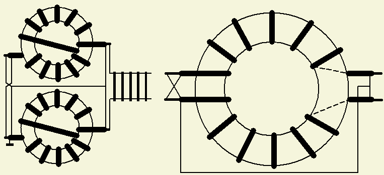 Als er maar één kern gebruikt wordt, dan moet de tweede coaxkabel of het tweede paar windingen tegengesteld op de kern aangebracht worden, zoals dat zo goed mogelijk op de tekeningen afgebeeld is. In feite hetzelfde systeem als de tegengestelde windingen van coaxkabels op één kunststof pijp.