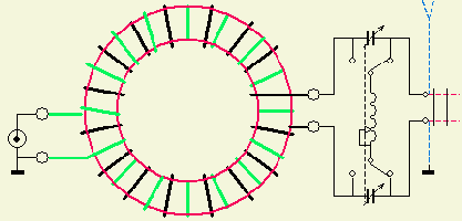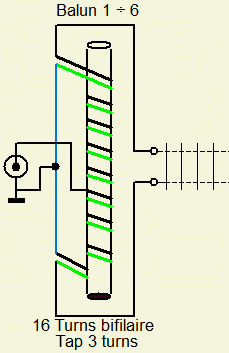 Door het experimenteren met baluns voor mijn S-Match antennetuner ben ik overgegaan op een afwijkende manier om de ingang van een symmetrische ATU te voeden. De primaire en secundaire spoel zijn gelijk maar volgens de tekening op een andere manier op de kern aangebracht. Het aantal windingen hangt af van het kernmateriaal; de zelfinductie op de laagste band moet ten minste 20 µH/160 m, 10 µH/80 m etc. zijn.