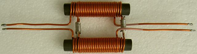 Een constructie (fig») voor meer vermogen en beter balanceren kan gemaakt worden met twee ferrietstaven of ringkernen.
