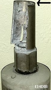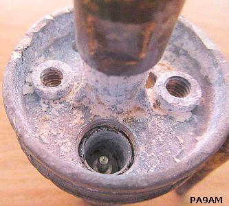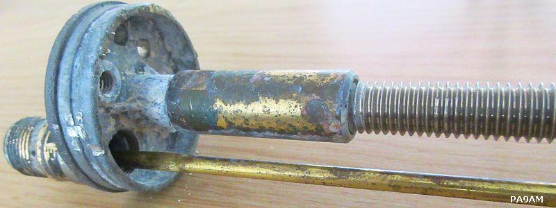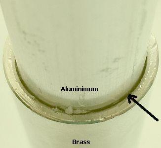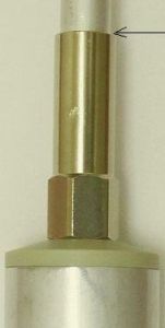 Another point of leakage and electrolysis or oxidation is the connection of the brass coupler installed at the bottom of the middle aluminum antenna rod. Acid-containing rainwater collects in the (clearly visible fig») gap, causing a chemical reaction between brass and aluminimum. The result of the damage can be seen on the image of EI4DIB («fig).