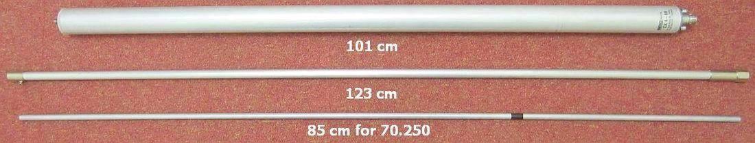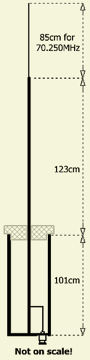 As a test, the antenna was set up on a 3 m pole and adjusted for the lowest SWR at 70.250 MHz. This was achieved with 85 cm length of the top rod.