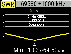 It tunes really well within the 4 m band and the SWR at the band limits is below SWR = 1.2.
