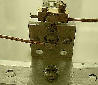 The Combi-match is also made of brass rod, but only after trial with one made of soft copper wire. It turns out that the precise attachment for a point with best SWR depends on the way the BNC connector is mounted.