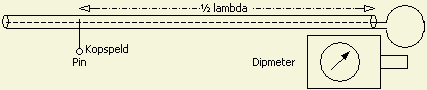 Het op maat maken van stuk ¼ λ kabel doe ik met een (grid)dipmeter. Rekening houdend met de verkortingsfactor («fig) wordt een lengte van iets meer dan ½ × V × λ uitgerold. Aan het uiteinde wordt een lusje bevestigd voor koppeling aan een dipmeter. Vervolgens worden afscherming en binnenader door een dunne kopspeld op een afstand van ½ λ kortgesloten en met de dipper de frequentie bepaald. Na een paar keer "prikken" vindt men de juiste lengte. Precies de helft daarvan is ¼ λ.
