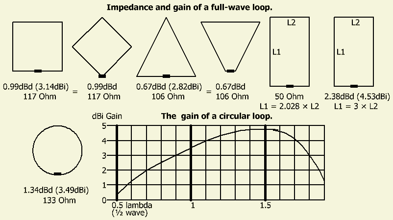 De versterking en karakteristieke impedantie van een loop bij diverse vormen.