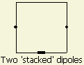 De geringe versterking van een vierkant is te verklaren door de antenne te zien als (fig») twee dipolen met een te korte afstand boven elkaar. De onderste dipool voedt de bovenste via de geknikte uiteinden (met een hoge impedantie) die men met enige fantasie kan beschouwen als een openlijn waarvan de draden ver uit elkaar liggen.