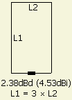 Vergroot men de afstanden (fig») van de twee "dipolen" met een lengte-breedte verhouding van 3 : 1, dan is de versterking maximaal met 2.38 dBd. De impedantie van het voedingspunt is mij onbekend.