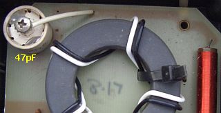 In plaats van twee 86 pF condensators in serie, heb ik een echte zender condensator («fig) van 47 pF gemonteerd.