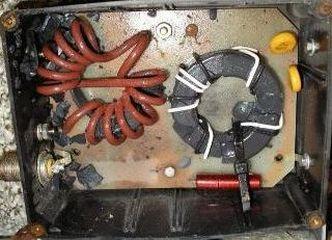 De isolatie werd verwijderd omdat er water tussen de krimpkous en spoel was gekomen.
