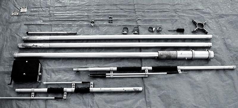 Na ingebruikneming ging de SWR op één band geleidelijk achteruit en later ook op een aantal andere banden. Tenslotte werd met weinig animo de antenne nog maar weer omlaag gehaald om de oorzaak op te sporen. Tussen een spoel en krimpkous was water gekomen. Bij mijn eerdere controle waren kennelijk een paar haarscheurtjes aan de aandacht ontsnapt. De spoel was gewikkeld op een vorm met groeven en de draad was op een paar plaatsen gefixeerd met (vermoed ik) tweecomponentenlijm. Tussen krimpkous en spoel was een op contactlijm gelijkende substantie aangebracht. De krimpkous werd verwijderd, de spoel gereinigd met thinner en de spleet tussen spoelvorm en buis opgevuld met twee componenten lijm. Over spoel en uiteinden van aluminium buizen werd contactlijm aangebracht en daarna met krimpkous overtrokken en («fig) met een elektrische verfbrander verwarmd. Het resultaat van de reparatie is duidelijk op de foto te zien.