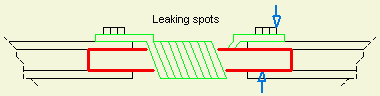 Potentiële punten waar vooral lekkage kan ontstaan is de plek waar de kous over een schroef gaat en de plaats waar de spoelvorm in de aluminiumbuis gestoken is. Door het sterk krimpen van de krimpkous op de kop van een schroef, ontstaat ten opzichte van andere plaatsen een vrij dunne laag die ook gemakkelijk kan beschadigen bij montage of transport.