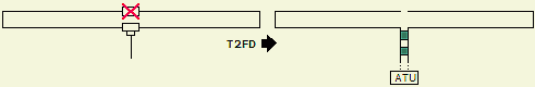 Als men over een goede symmetrische ATU beschikt en de antenne kan met openlijn gevoed worden, dan is er geen enkele reden om een T2FD te gebruiken. Een betere antenne verkrijgt men volgens de linkse tekening. De weerstand van een T2FD wordt verwijderd en vervangen door een isolator.