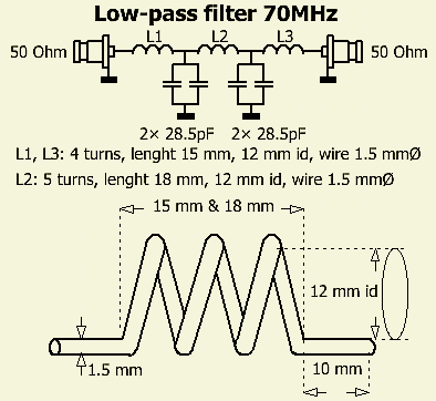 There are several LP filters for the 4 m band on the Internet. This article is about such a simple 5-pole low pass filter with a smaller diameter of the coils.