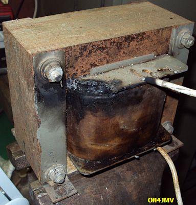 ON4JMV wrote: "a GU-43B was modified according to your instructions. The tube was not used for a long period of time. I wanted a degassing process during the night with filament and anode voltages on. The next morning I saw that a fuse of the mains fuse box was blown. I replaced a new fuse and the PA started up normally, but after a few seconds I heard a strange stronger becoming hum, immediately I realised that the high voltage transformer was burning out! There was some smoke and happily my camera was on hand so I took in a reflex a few pictures. During the third shot the transformer was on fire. The worst thing was that fuse of the mains fuse box did not blow. This could happen at night with dangerous and annoying consequences.