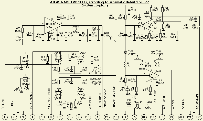 The enhanced effect was later confirmed when I came into the possession of an Atlas-215x. When listening to the 80 m band the audio was distorted receiving a strong signal. When the original PC-300C was replaced by the already modified PC-300B, there was no distortion.